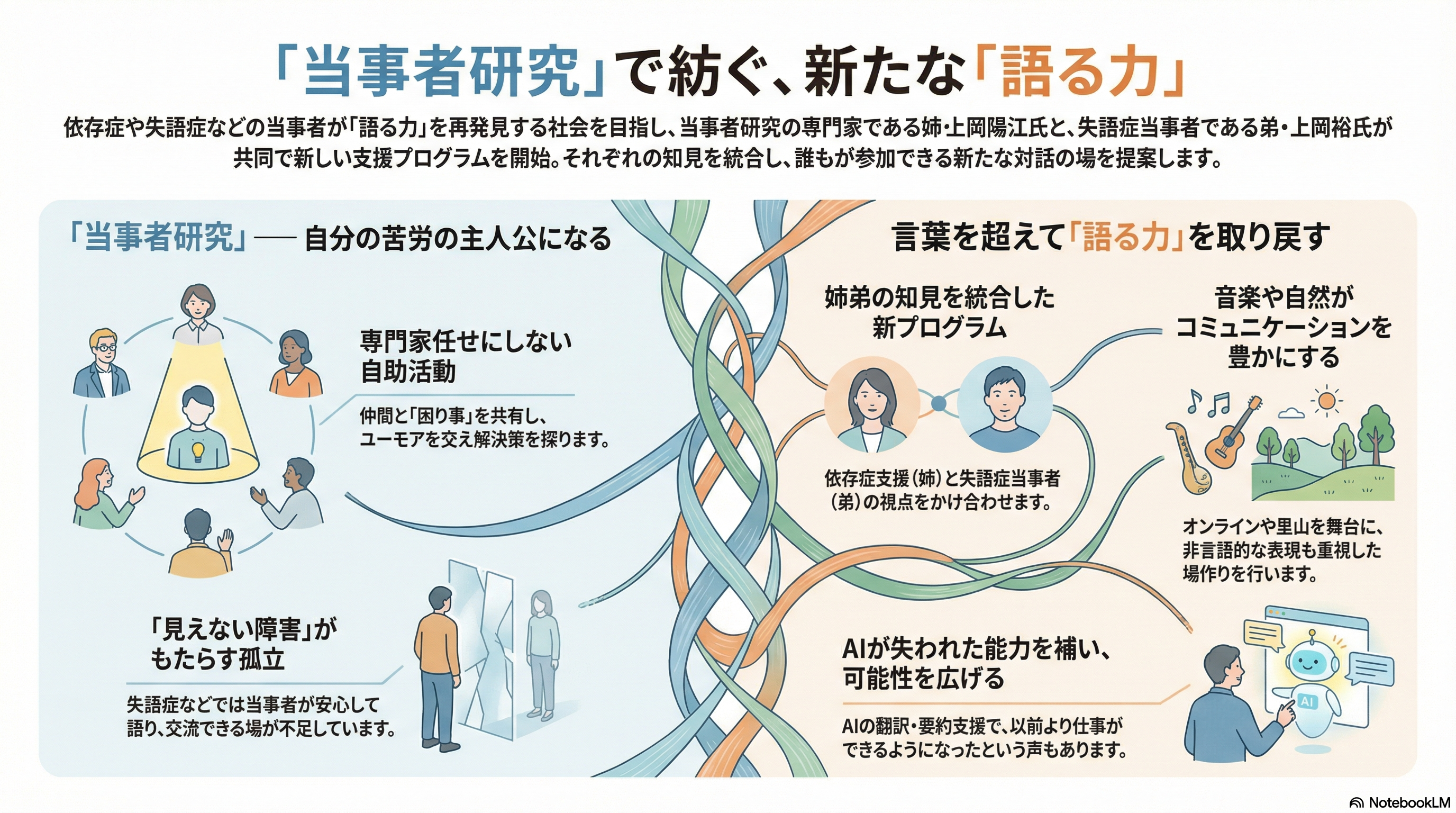 「当事者研究」は姉の上岡陽江が東京大学熊谷晉一郎研究室で協力研究員として参画する事業です。 姉は1991年に薬物・アルコール依存をもつ女性をサポートするダルク女性ハウスを設立。長く当事者活動をして来ました。当事者研究は姉 … [Read more…]